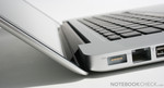 Wie bei MacBooks üblich, spart Apple bei den physischen Ports leider stark ein. Lediglich 2 USB Ports sind für ein 15" Notebook geradezu jämmerlich. Ausgabegeräte ohne Displayportanschluss müssen mit den teuren optionalen Adaptern betrieben werden (VGA, HDMI z.b. für Fernseher oder Beamer). Statt dem schnellen e-SATA für externe Festplatten, setzt Apple weiterhin auf das eher seltene FireWire 800 Interface. Auch der von vielen erhoffte USB 3.0 Anschluss ist am flachen Gehäuse nicht vorzufinden. Die Erweiterbarkeit ist aufgrund der fehlenden ExpressCard oder Dockingstation Ports dürftig.