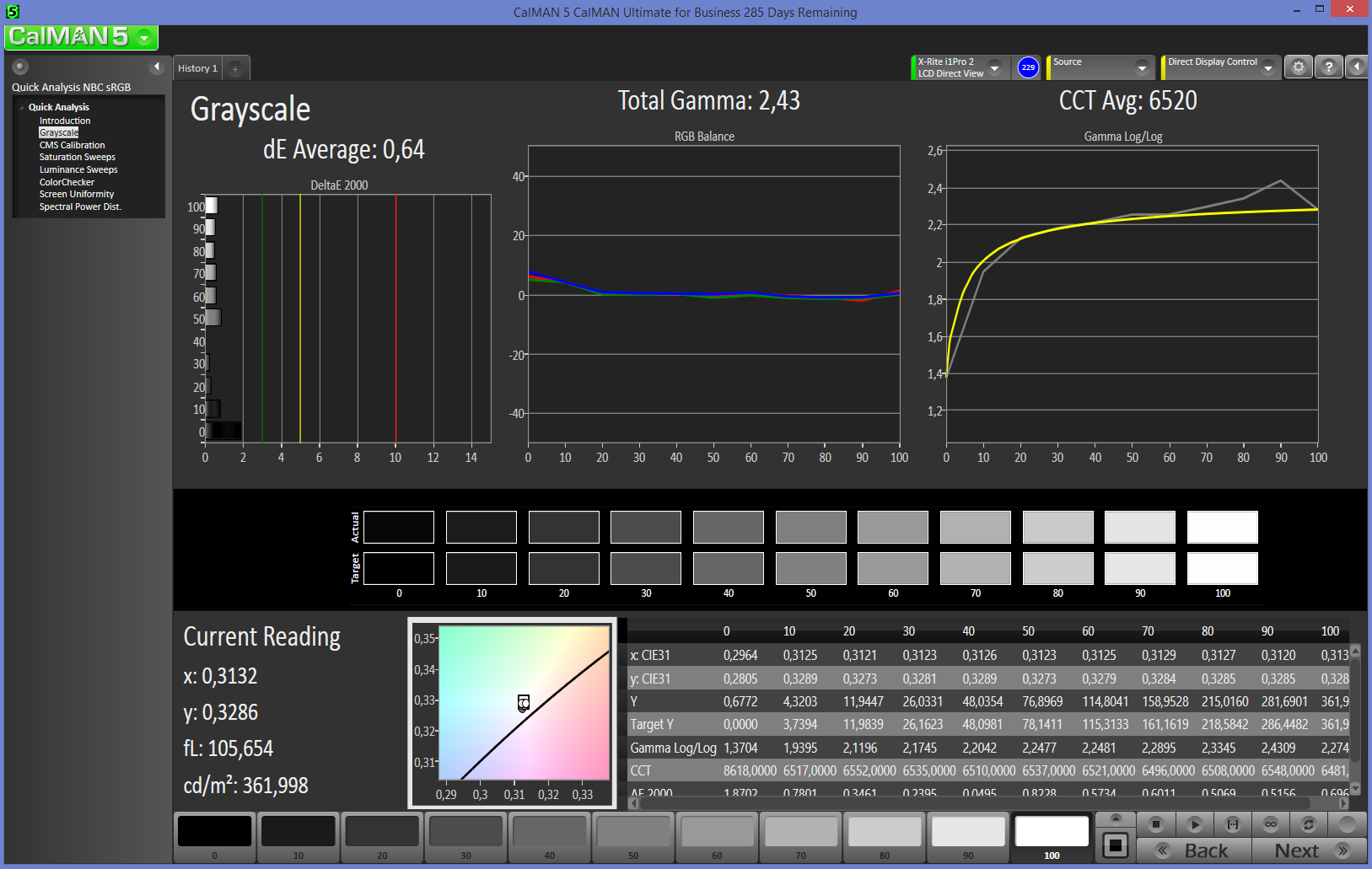 ΔE Greyscale Calman: 1.8 | ∀{0.09-98 Ø5}