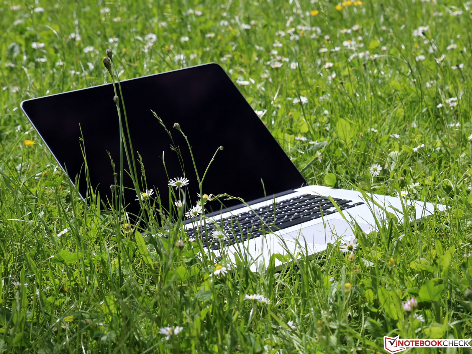 In Anbetracht von Größe und Gewicht sowie der stark spiegelnden Bildoberfläche gibt es sicherlich bessere Notebooks für den Außeneinsatz als Apples 15-Zöller. Dank der hohen Maximalhelligkeit, die im Akkubetrieb ohne Abstriche zur Verfügung steht, meistert das MacBook aber auch diese Aufgabe und lässt sich an schattigen Plätzen problemlos nutzen.