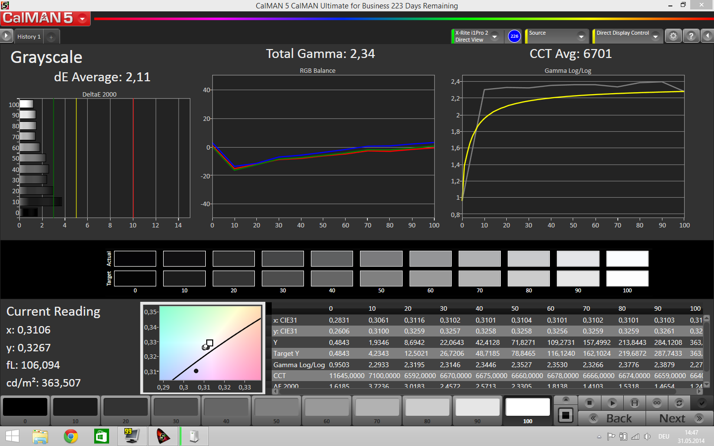ΔE Greyscale Calman: 2.11 | ∀{0.09-98 Ø5}
