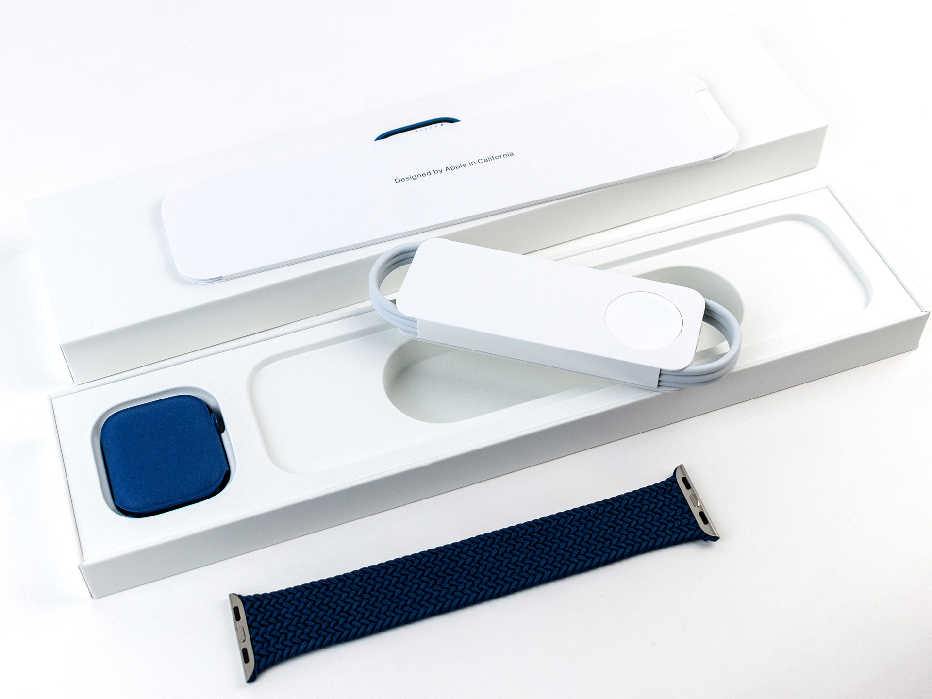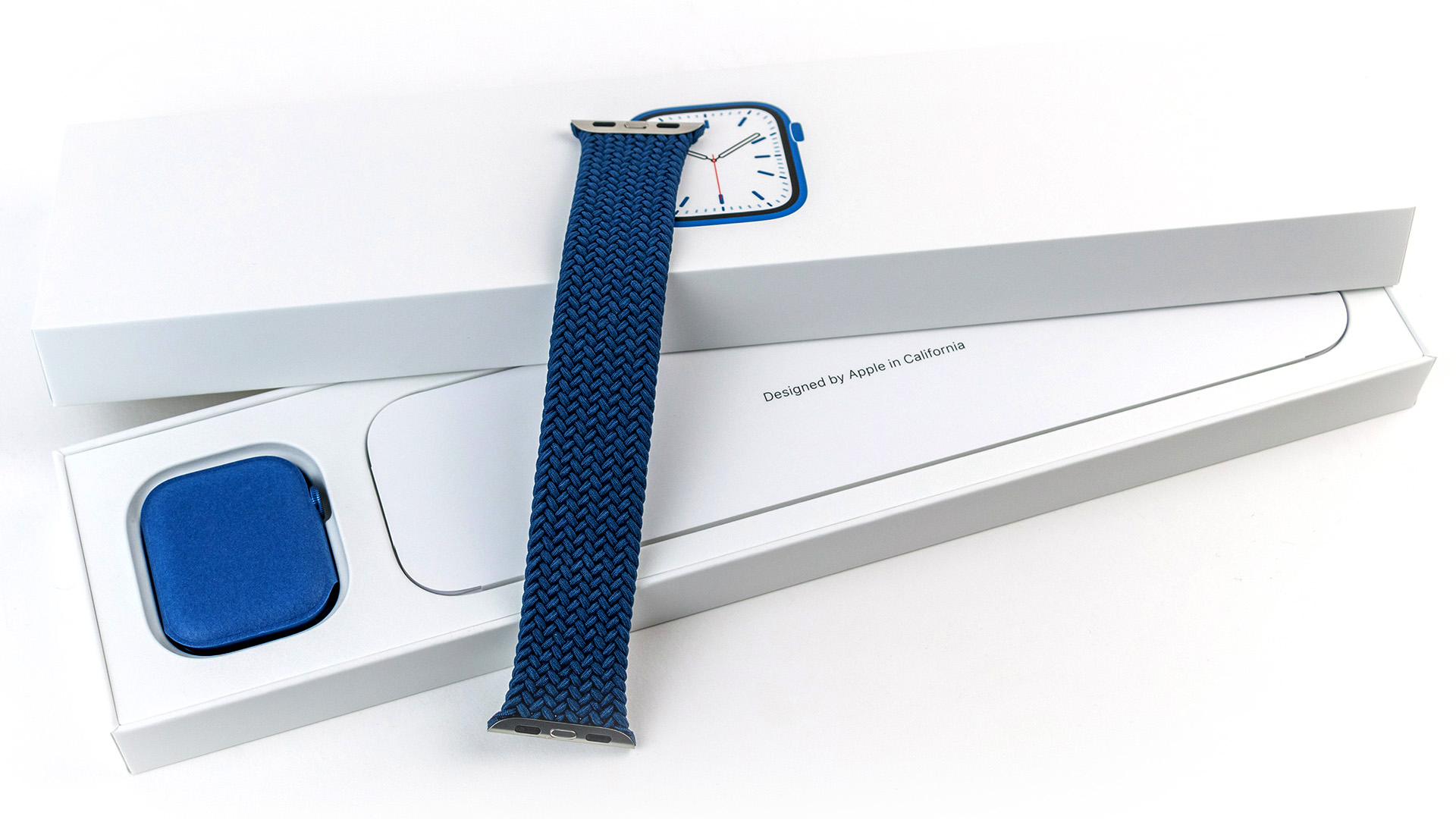 Bei unserem Testgerät handelt es sich um das 41-mm-Modell mit blauem Aluminium-Gehäuse, ohne LTE und mit einem geflochtenen Solo-Loop-Armband.