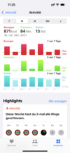 Die Apple Watch Series 7 arbeitet zur Motivation mit drei Aktivitätsringen für Bewegen, Trainieren und Bewegen. Neben den getätigten Schritten wird auch die zurückgelegte Distanz ermittelt sowie die erklommenen Etagen. Die verbrauchen Kalorien werden aus allen Tätigkeiten inklusive der absolvierten Trainings berechnet. Der Puls, Blutsauerstoff und die Atemzüge können von der Uhr automatisch erfasst werden.