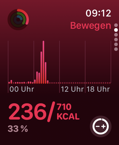 Apple bietet auf dem iPhone gleich zwei eigene Apps an, mit denen die Aktivitätsziele verfolgt werden können: Apple Health und Apple Fitness. Beide Apps und die Smartwatch selbst zeigen die Aktivität in den bekannten Ringen an. Dabei werden die verbrannten Kalorien in Bewegung, die Trainingszeit und die Zeit im Stehen angegeben. Die Ziele können individuell angepasst werden.