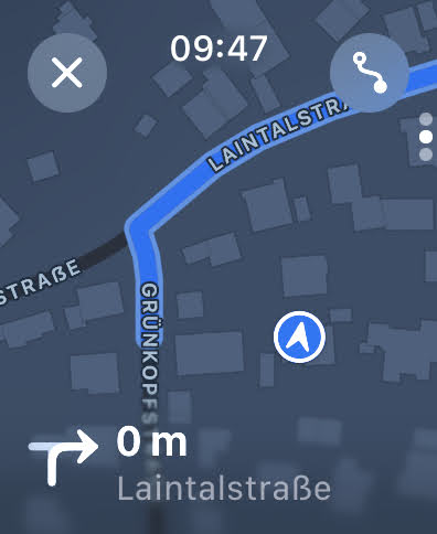 Mit der Apple Watch Series 9 ist es auch möglich zu navigieren. Mit Apples eigener Karten-App kann die Navigation direkt von der Uhr aus gestartet werden. Sowohl die Anzeige von Pfeilen als auch eine Karte kann ausgewählt werden. Sprachansagen gibt das gekoppelte iPhone aus.