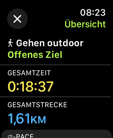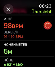 Trainings werden in den Apps Health und Fitness gelistet, alle Informationen gibt es auch auf der Smartwatch selbst. Beim Gehen liefert die Apple Watch neben den Infos zur Distanz und der Trainingszeit auch Daten zur Durchschnittsgeschwindigkeit, den Höhenmetern und der durchschnittlichen Herzfrequenz. Die Strecke kann in einzelne Segmente untergliedert werden, auch Rundenzeiten können genommen werden.