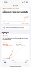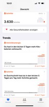 Außerdem gibt die Software die absolvierten Schritte, die zurückgelegte Distanz in Kilometern und die gelaufenen Stockwerke an. All diese Infos können auf dem Smartphone und auf der Apple Watch eingesehen werden. Die Smartwatch kann von allen Zielen eine Wochenübersicht anzeigen. Auf dem Smartphone können die Ergebnisse einzelner Tage miteinander verglichen werden.