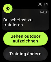 Die Apple Watch kann eine Vielzahl an Sportarten tracken. Gehen, Joggen, Schwimmen, Radfahren, Rudertraining und Training am Crosstrainer erkennt die Smartwatch automatisch. Sie startet das Training jedoch nicht eigenständig, sondern es gibt ein Pop-Up mit der Frage, ob ein Training gestartet werden soll. Auf Wunsch kann die Apple Watch das Training aber automatisch pausieren, etwa wenn der Träger beim Joggen stehen bleibt.