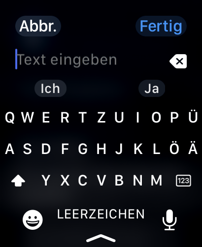 Benachrichtigungen werden auf der Watch Ultra 2 zuverlässig dargestellt. Die Smartwatch kann auch Emojis und Bilder darstellen - je nach App werden die Bilder allerdings nur verschwommen dargestellt. Antworten sind mit vorformulierten Kurzantworten möglich, aber auch mit Emojis, per Spracheingabe oder vollwertiger QWERZ-Tastatur. Die Tastatureingaben gelingen auf dem Display meist ohne Fehleingaben.