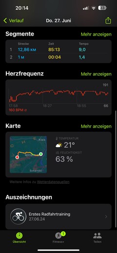Für die Messung der Herzfrequenz nehmen wir die Apple Watch Ultra 2 zusammen mit einem Polar H10-Brustgurt auf eine Radtour. Den Ruhepuls geben beide Geräte identisch an. Den Leistungspuls nehmen wir zu drei verschiedenen Zeiten. Im Schnitt der Messungen liegt die Abweichung bei 0,67 Prozent. Bei zwei von drei Messungen gibt die Smartwatch einen höheren Wert an.