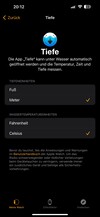 Nach der erfolgreichen Übertragung der Daten können Einstellungen vorgenommen werden. Das betrifft das bevorzugte Handgelenk, die Schriftgröße, die Tastenbelegung aber auch die automatische Geräusch- oder Tiefenmessung. Sind alle Einstellungen vorgenommen, startet ein Tutorial zur Bedienung auf der Smartwatch.