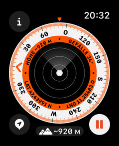 Die Route kann mit Pfeilen oder auf einer Karte dargestellt werden. Außerdem kann die Watch Ultra 2 die Satellitenverbindung für die Kompass-Backtrack-Funktion nutzen. Damit werden Bewegungen nachverfolgt, zusätzlich wird ein Kompass eingeblendet. Das soll beim Bewegen in unbekanntem Terrain vor Verlaufen schützen.