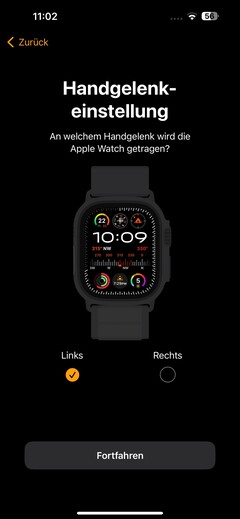 Nachdem die Apple Watch Ultra 2 eingeschaltet wird, erscheint automatisch ein Pop-Up auf einem iPhone in der Nähe. Um die Geräte zu koppeln, wird das Display der Smartwatch mit der Kamera des iPhone eingescannt. Im Anschluss kann gewählt werden, ob die Smartwatch mit den Daten früherer Modelle bespielt oder als neue Watch eingerichtet werden soll. Auch ist es möglich, die Uhr für Familienmitglieder einzurichten.