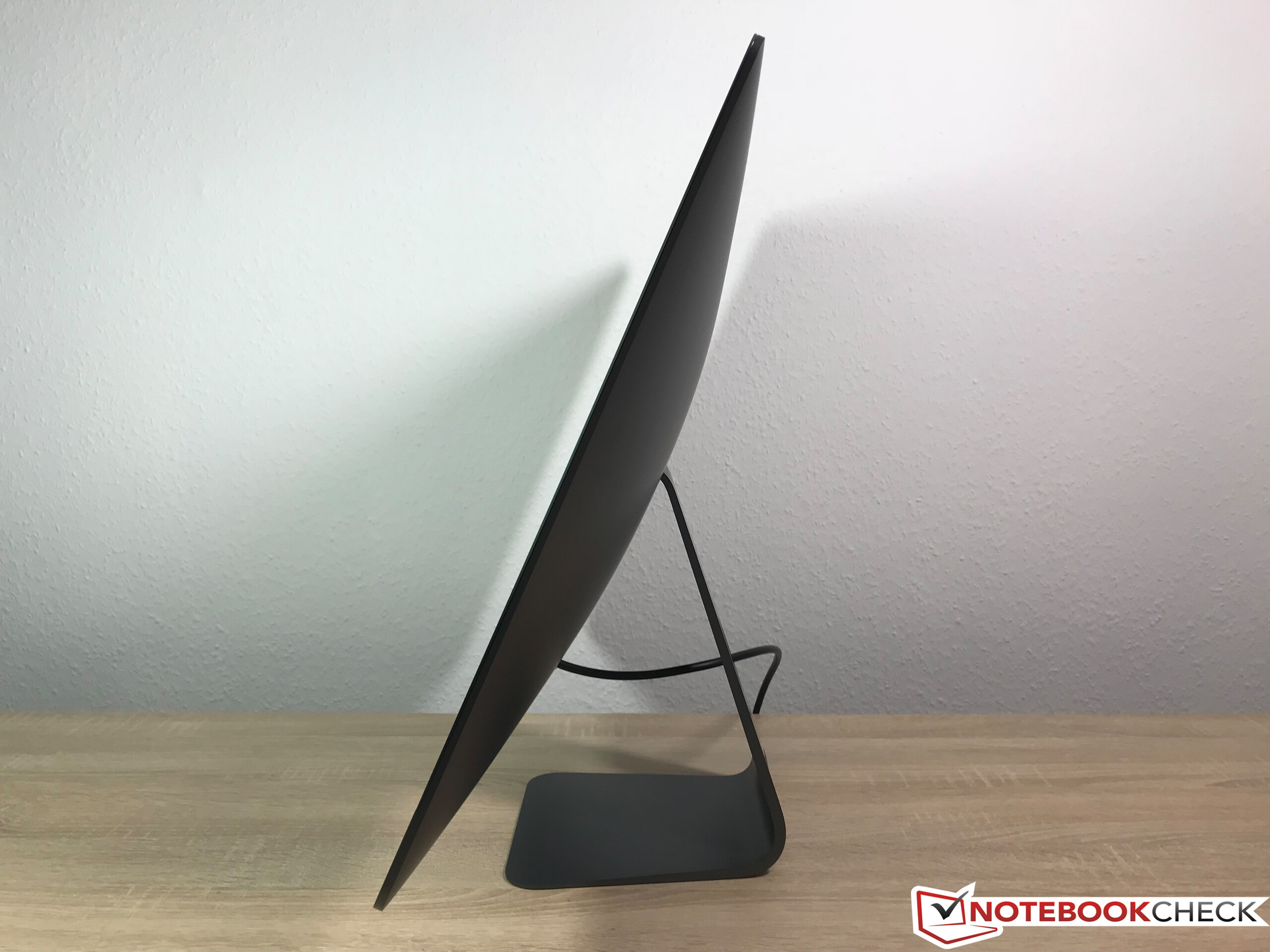Beim Gehäuse gibt es kaum Neuigkeiten gegenüber dem regulären Apple iMac, allerdings setzt man im Vergleich zu den weißen Geräten für Privatkunden nun auf ein dunkelgraues Gehäuse. Mit seinen knapp 10 kg ist der iMac Pro sicherlich kein Leichtgewicht, doch angesichts des integrierten 27-Zoll-Panels relativiert sich das Gewicht auch wieder. Zudem ist das Netzteil (500 Watt) bereits integriert. Die Verarbeitung des Gerätes ist exzellent und insgesamt hinterlässt der dunkelgraue iMac Pro einen sehr edlen Eindruck.