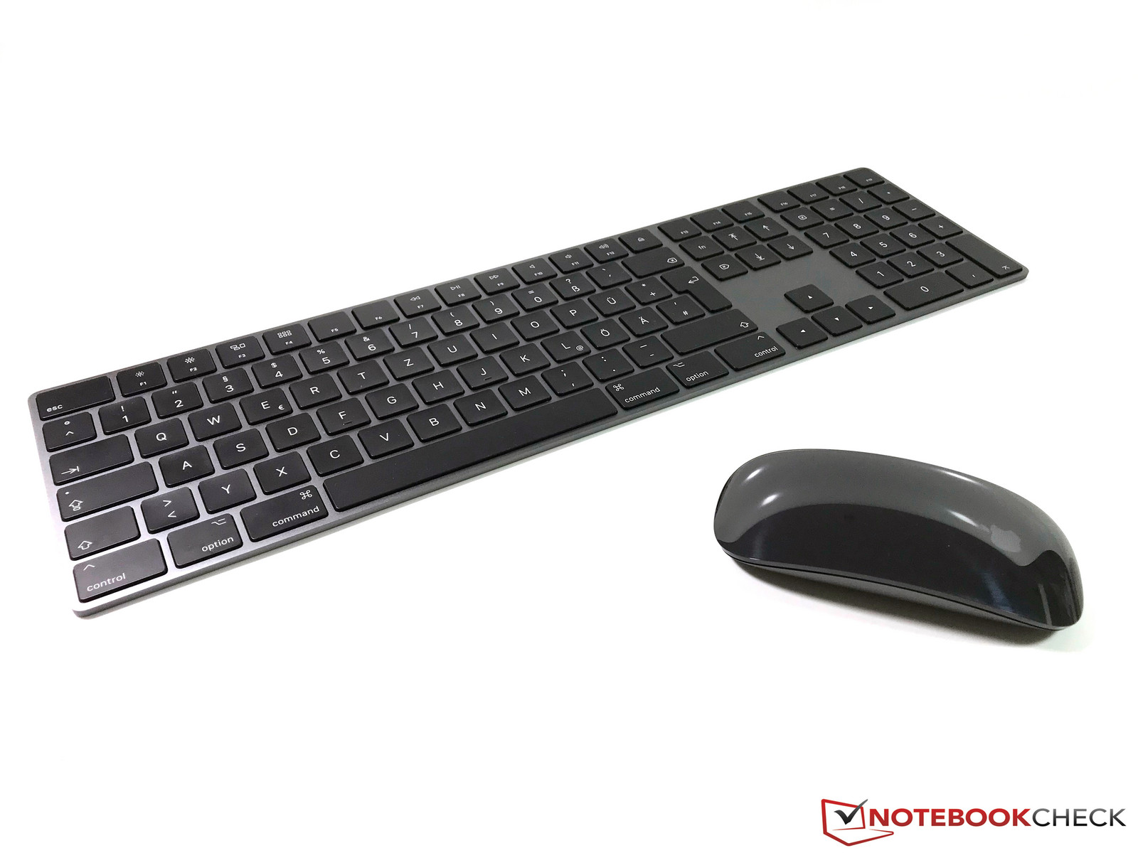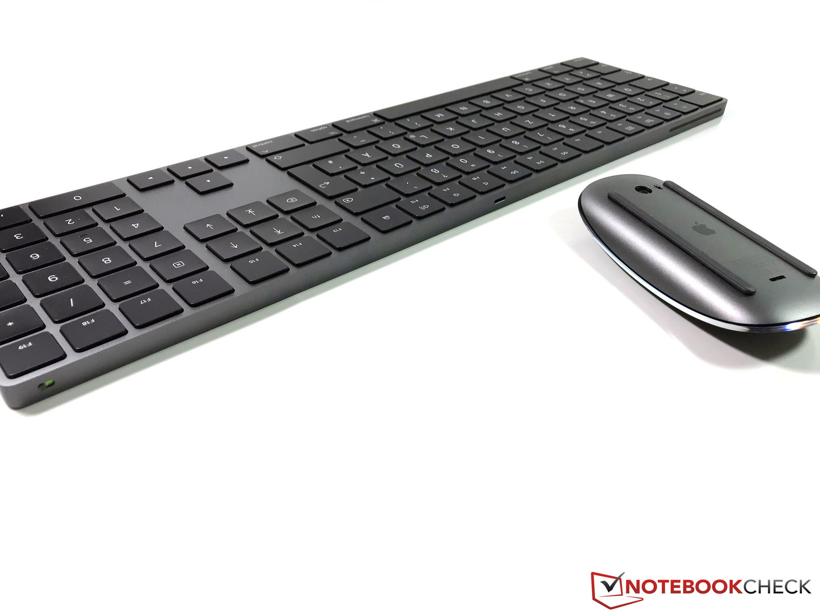 Die Eingabegeräte bestehen aus der Magic Mouse 2 und dem Magic Keyboard 2 mit einem integrierten Nummernblock. Beide sind kabellos und können über eine Lightning-Buchse aufgeladen werden. Die Qualität ist ordentlich, allerdings gibt es auch einige Schwachpunkte. Die Tastatur ist zwar leicht angestellt, allerdings besitzen die Tasten nur einen begrenzten Hub. Das Feedback ist allerdings ordentlich. Wenn man nicht besonders viel tippt, reicht die Eingabe sicherlich, doch vor allem, wer gute Desktop-Tastaturen gewöhnt ist und viel schreibt, wird sich mit dem Apple-Keyboard kaum anfreunden können. Ein deutlicher Nachteil ist zudem das Fehlen einer Hintergrundbeleuchtung.