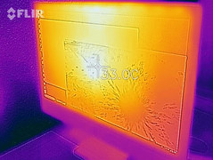 Die Oberflächentemperaturen sind bei einem Desktop-System natürlich bei weitem nicht so wichtig wie bei einem Laptop, da das Gerät vermutlich sowieso auf dem Schreibtisch steht und man keinen direkten Kontakt hat. Insgesamt macht die Kühlung auch einen guten Job und selbst unter Last können wir keine kritischen Temperaturen ermitteln. Lediglich im Bereich der Lüfteröffnung (hinter dem Standfuß) erreichen die Temperaturen mehr als 45 °C, was aber keinesfalls kritisch ist.