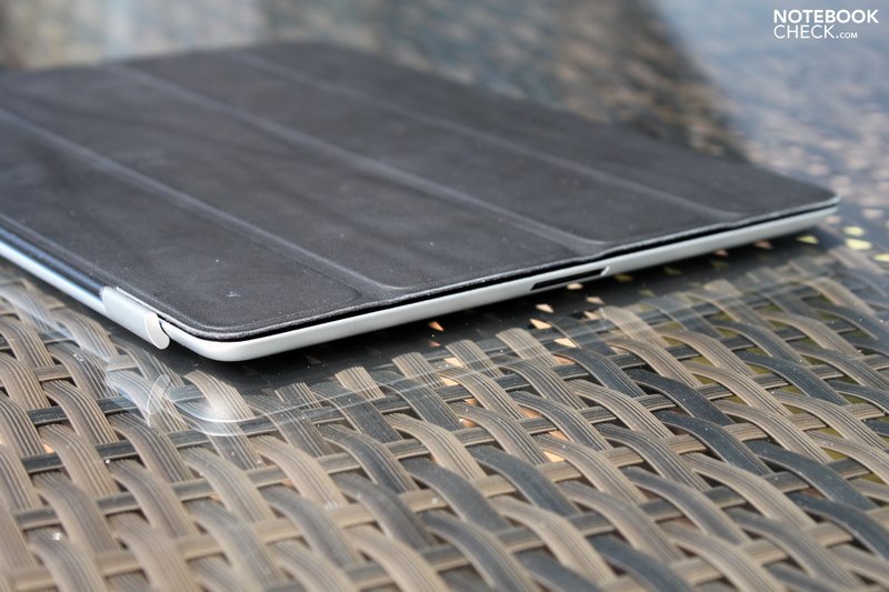 Zwar gab es auch bei der ersten iPad-Generation eine Tasche als Originalzubehör von Apple, allerdings wurde diese bei weitem nicht so beworben wie die aktuelle Lösung und war aufgrund ihrer Konzeption durch zahlreiche Alternativen einfach und günstig ersetzbar. Die nunmehrigen „Smart Covers“ wie Apple sie nennt, wurden besonders ausgeklügelt konzipiert. Magneten an einer Seite saugen sich an der Seitenkante des iPads fest, die einzelnen Sektionen des Deckels bedecken das Display und werden schließlich ebenso magnetisch in Position gehalten. Schließt man das Smartcover, deaktiviert sich automatisch das Display et vice versa. Auf der Innenseite der Cover befindet sich eine Mikrofaseroberfläche, die das Display beim Transport durch minimale Bewegungen automatisch von Fingerabdrücken befreien soll. Im Test konnten wir dies zu einem geringen Grad beobachten, um eine eigenständige Reinigung des Displays wird man aber dennoch nicht herum kommen. Darüber hinaus findet man bereits Berichte im Internet, dass diese Prinzip auch umgekehrt das Display verschmutzen kann, nämlich sobald sich die Mikrofaser mit Schmutz vollgesogen hat und diesen dann langsam auf das Display zurück bringt. Geringfügig konnten wir dies auch bei unserem Modell feststellen.