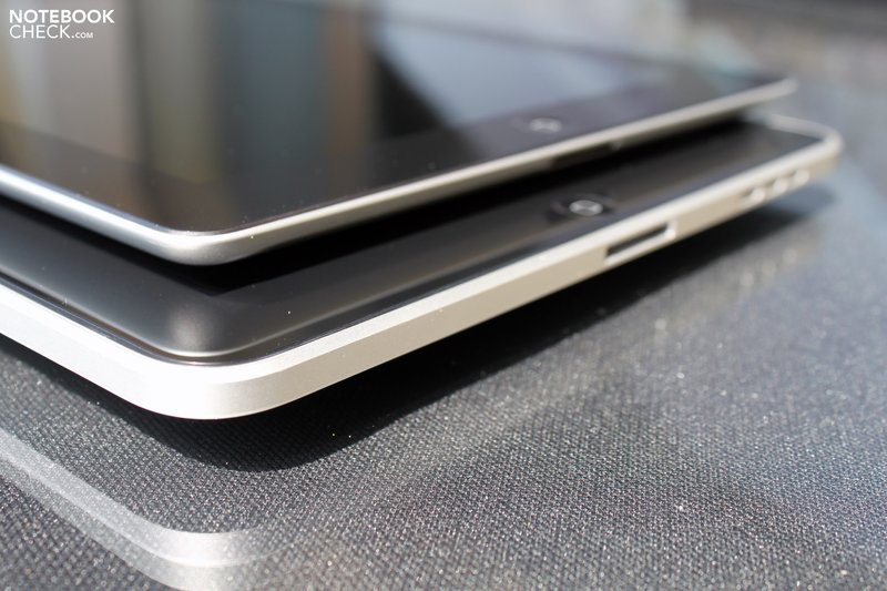 In Punkto Verarbeitungsqualität setzt das iPad 2 nach wie vor Maßstäbe und kann als Referenz für kommende Tablets gewertet werden. Das Gehäuse besteht wie bei den aktuellen MacBook Pro Notebooks aus einem massiven Stück Aluminium, das entsprechend in Form gefräst wurde. Unsauber verarbeitete Stellen findet man ebenso wenig wie Bereiche die unter Druckeinwirkung nachgeben könnten. Dies gilt auch für etwaige Knarrgeräusche, die man beim iPad 2, wie auch schon beim Vorgänger, schlicht nicht finden wird.