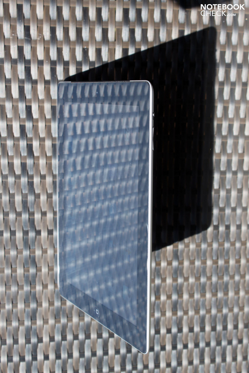 Für den Betrieb im Freien ist das iPad mit seinem überaus hellem Display zwar gut gerüstet, die spiegelnde Displayoberfläche sorgt aber für starke störende Reflexionen. Unter direkter Sonneneinstrahlung ist dann kaum mehr etwas zu erkennen am Display. Versucht man direkte Einstrahlung zu vermeiden, kann das iPad aber durchaus auch im Freien verwendet werden – die maximale Displayhelligkeit vorausgesetzt.
