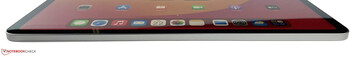 An der Oberseite des Tablets sitzt eine magnetische Haltefläche für den Apple Pencil Pro beziehungsweise Apple Pencil (USB-C). Über den rückseitig angebrachten Smart Connector-Anschluss mit seinen 3 Pins kann das ebenfalls optionale Apple Magic Keyboard angeschlossen werden.