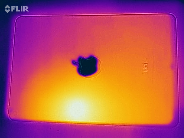 In unserem Test erreichen die Oberflächen des iPad Mini 5 Temperaturen von bis zu 26,2 °C im Leerlauf und maximal 38,3 °C unter Last. Dabei erwärmt sich das Apple-Tablet stellenweise spürbar, wird aber nie zu heiß, um es in der Hand halten zu können.