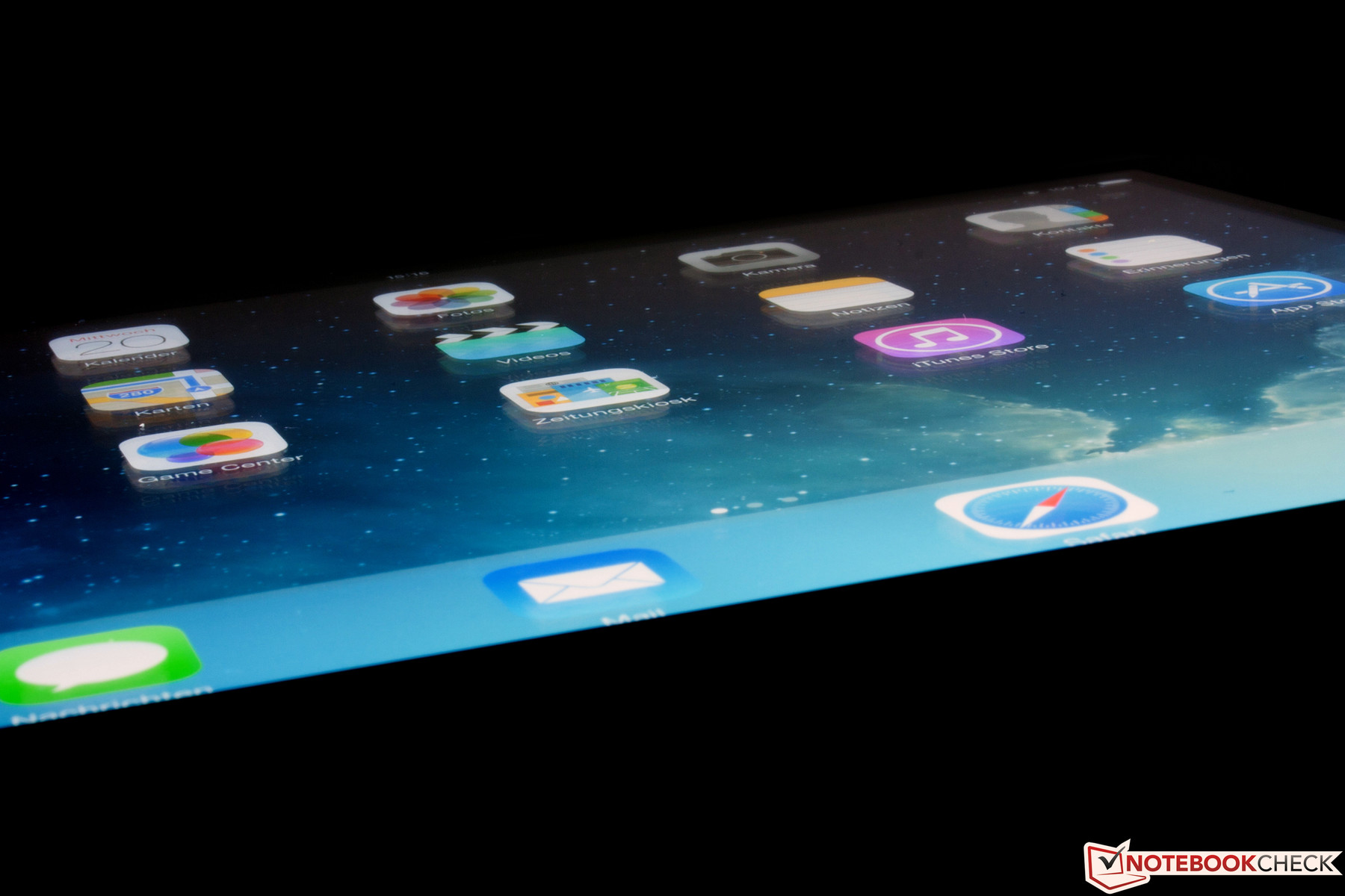 Die Blickwinkelstabilität des iPad Mini Retina ist aufgrund der verwendeten IPS-Technologie eigentlich sehr gut. Jedoch kann es bei hellem Umgebungslicht dazu kommen, dass die spiegelnde Oberfläche den möglichen Betrachtungswinkel stark verkleinert. Außerdem wird wie beim iPad Air bei flachen Winkeln ein Abstand zwischen der Glasoberfläche und dem Panel sichtbar und es entstehen unschöne Reflexionen. In der Praxis fällt dieser Effekt jedoch nur sehr selten störend auf.