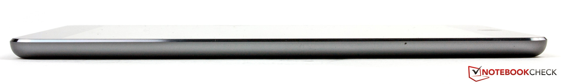 Ansonsten könnte man meinen, einen kleineren Zwilling des iPad Air vor sich liegen zu haben. Das Unibody-Gehäuse besteht ebenfalls aus Aluminium und ist erstklassig verarbeitet. Das Material ist ein echter Handschmeichler, jedoch auch anfällig gegenüber Fingerabdrücken. Die gesamte Front wird durch eine Glasabdeckung geschützt. Die Spaltmaße zwischen dem Glas und dem Aluminium-Gehäuse sind schmal und absolut gleichmäßig. Die von Apple angepriesene fettabweisende Beschichtung des Touchscreens ist nicht besser als bei anderen Tablets. Um den gelegentlichen Einsatz eines Putztuches wird niemand herumkommen.