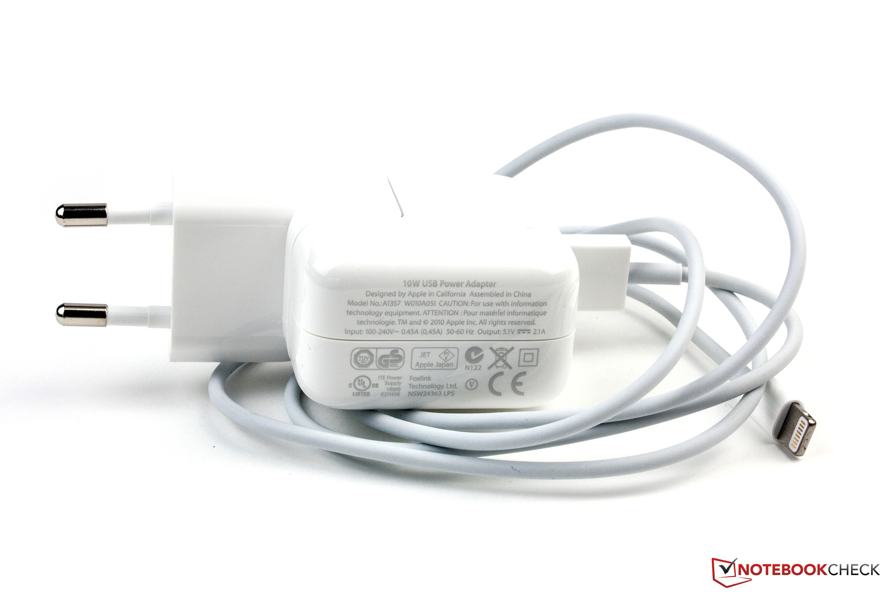 Das mitgelieferte Zubehör des iPad Mini Retina ist gewohnt übersichtlich gehalten. Neben einem modularen Netzteil mit einer Nennleistung von 10 Watt liegt ein Lightning-auf-USB-Kabel bei, welches zum Laden des Tablets genutzt werden kann sowie zum Datentransfer mit einem Computer. Damit erschöpft sich der Lieferumfang jedoch auch schon.