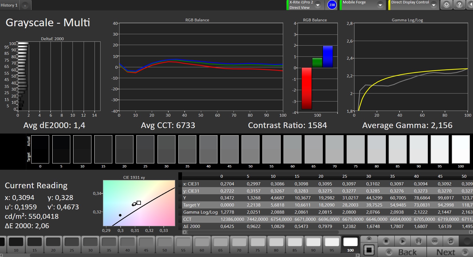 ΔE Greyscale Calman: 1.4 | ∀{0.09-98 Ø5}