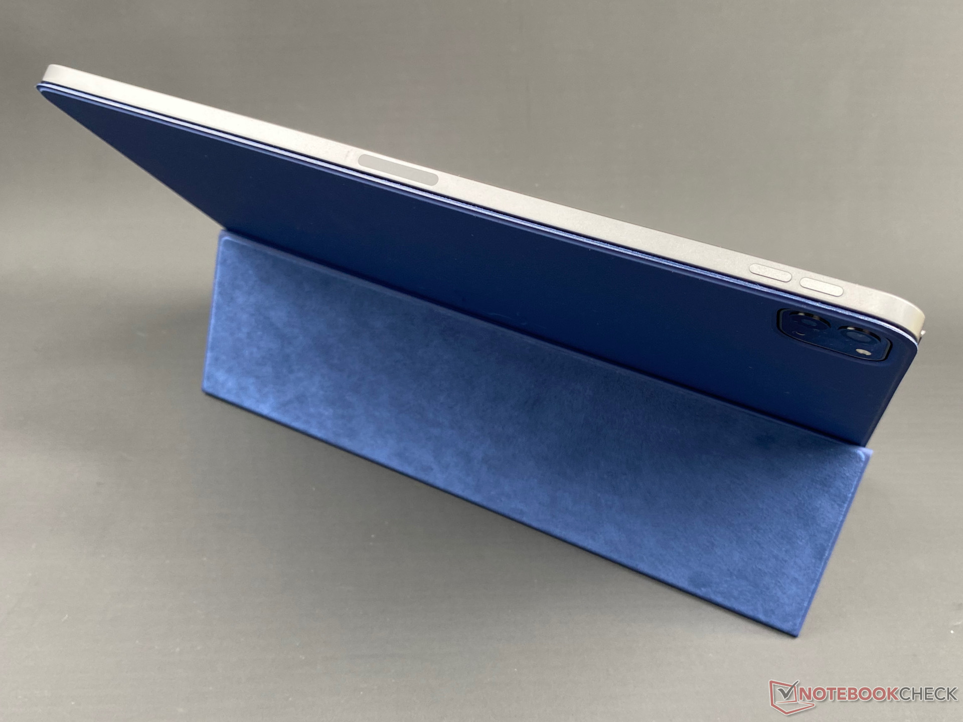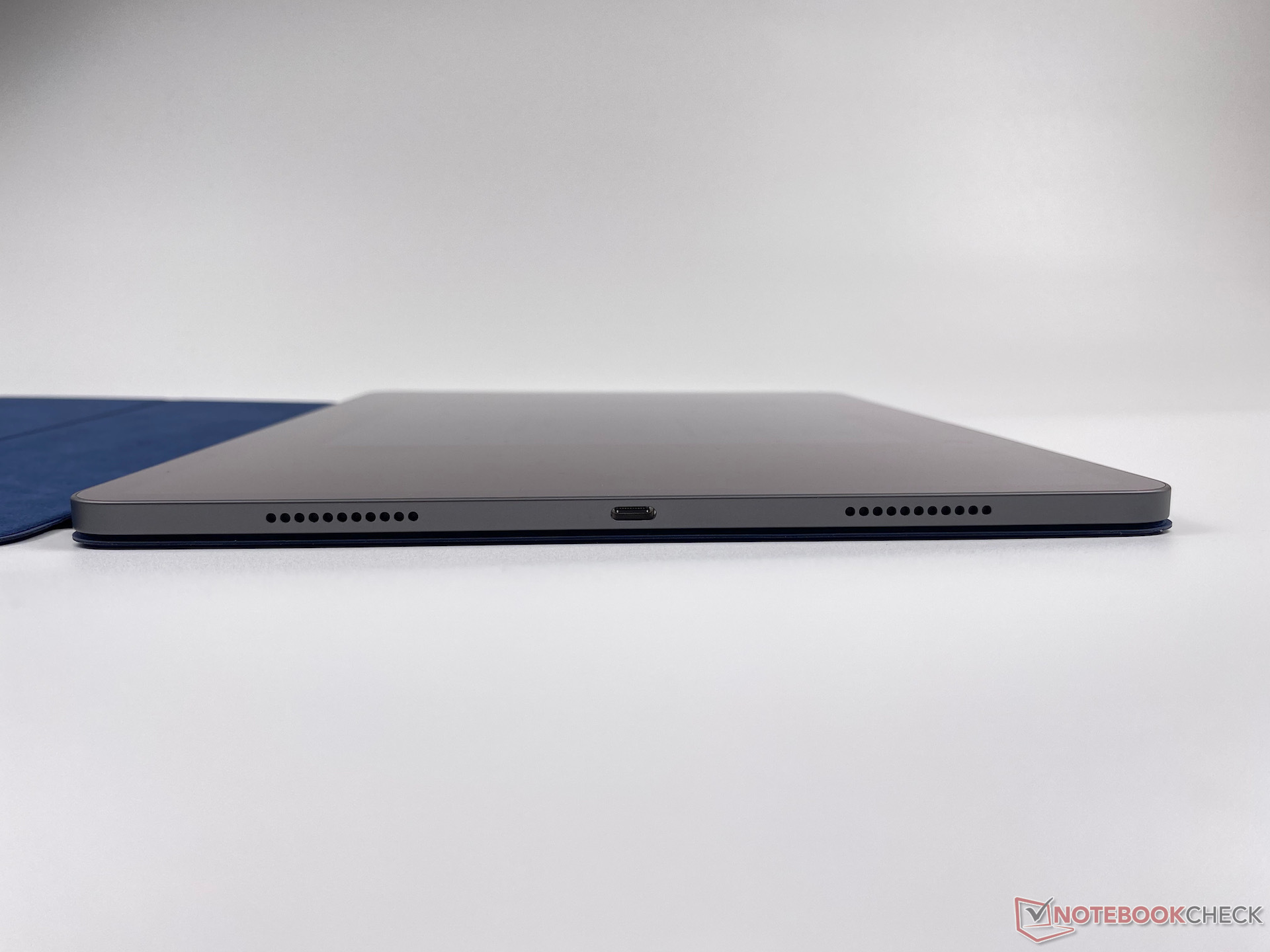 Beim 12.9-Zoll-iPad bleibt das Gehäusedesign unverändert zum Vorgänger. Durch das Mini-LED-Backlight wurde das Tablet zwar unmerklich dicker und schwerer, das stabile und einwandfrei verarbeitete Aluminiumgehäuse ist aber weiterhin hervorragend. Spaltmaße, Haptik und Optik sind, wie von Apple bekannt, einwandfrei. Die Displayränder sind ebenfalls unverändert und bieten Platz für die verbesserte Frontkamera. Auch kann man dadurch das Tablet ohne Fehleingaben oder Überdeckungen angenehm halten. Die Verwindungssteifheit ist in unserem Test einwandfrei.