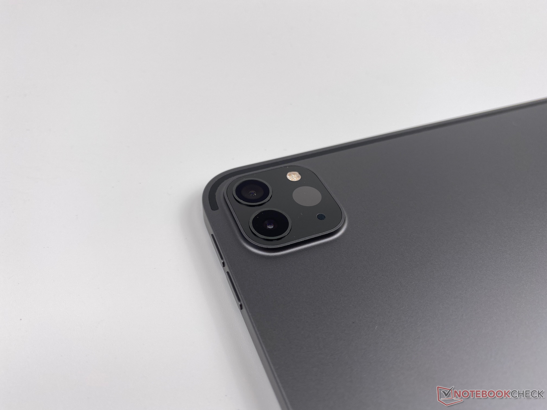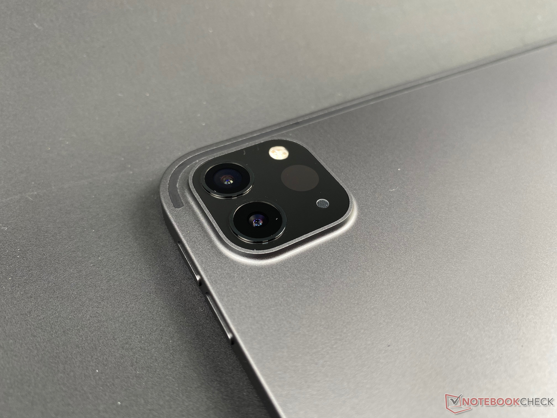 Bei den Kameras verweisen wir für mehr Details auf unseren Test des kleinen iPad Pro 11. Das große 12.9-Zoll-Modell bietet das gleiche Kamerasystem mit 12 MP Ultraweitwinkeloptik an der Frontseite und zwei Sensoren plus LiDAR-Scanner auf der Rückseite. Als Besonderheit kann die Selfie-Kamera den User "im Bild behalten". Dies funktioniert im Test einwandfrei und selbst wenn man sich bei einem Facetime Call vor dem Tablet umherbewegt, folgt einem der Bildausschnitt. Auch drei Personen konnte die Software so fokusieren.