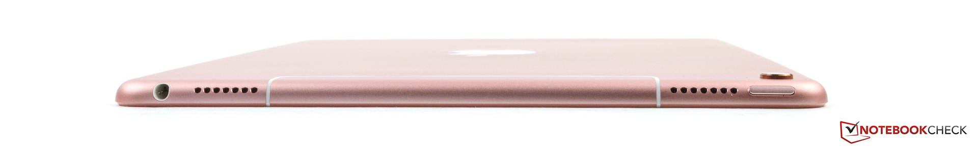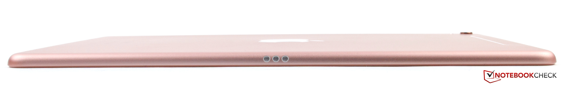 Optik, Haptik als auch Verarbeitung und Stabilität entsprechen dem größeren Bruder iPad Pro 12.9 und liegen auch verglichen mit anderen Produkten auf allerhöchstem Niveau. Das Tablet mit Aluminium-Unibody-Gehäuse wiegt genauso viel wie das ältere iPad Air 2 und erreicht bis zu 444 Gramm in der LTE- und 437 Gramm in der Wifi-Version. Zwar gibt es im Android-Umfeld mit dem Sony Experia Z4 Tablet oder dem Samsung Galaxy Tab S2 noch geringfügig leichtere Geräte im vergleichbaren Format, dennoch darf dem iPad Pro 9.7 eine zufriedenstellende Erfahrung beim Einsatz als Tablet attestiert werden. Während sich das Pro 12.9 nach einiger Zeit im Tablet-Einsatz mit seinem Gewicht von 723 Gramm (+65 %) deutlich bemerkbar macht, geht selbiges mit dem vorliegenden 9,7-Zoll-Pendant vergleichsweise beschwerdefrei vonstatten. Zum Vergleich: Microsofts Surface Pro 4 (i5/i7) wiegt 786 Gramm (Tablet only), das Surface 3 ist mit 622 Gramm ebenso erheblich schwerer (allerdings mit größerem 10.8-Zoll-Display).