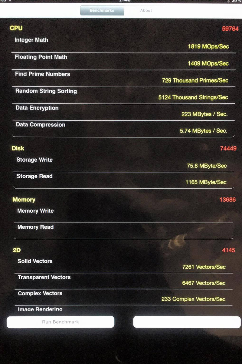 Werfen wir einen Blick auf die Benchmarks, insbesondere im Vergleich zum großen Bruder iPad Pro 12.9: In den meisten Tests ist ein Vorsprung des 12,9-Tabs im Bereich von wenigen Prozent zu beobachten. Das minimal bessere Abschneiden des iPad Pro 9.7 in einzelnen wenigen Tests ist wohl eher einer bestimmten möglichen Varianz dieser Benchmarks zuzuschreiben. Auffällig ist hingegen das erheblich bessere Abschneiden des Pro 12.9 im grafiklastigen GFX Bench. Hier kann ein rund doppelt so hohes Ergebnis wie mit dem iPad Pro 9.7 erreicht werden.