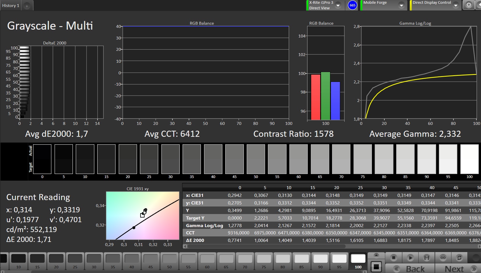 ΔE Greyscale Calman: 1.7 | ∀{0.09-98 Ø5}