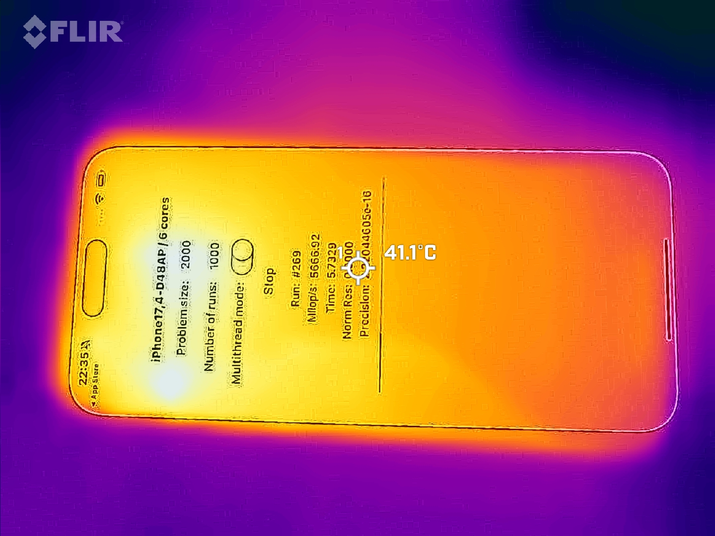 Die Temperatur-Entwicklung am Gehäuse ist bei längerer Last durchaus spürbar: 47,6 °C messen wir maximal. Damit kann das iPhone schon ganz schön warm werden, wenn man es fordert.