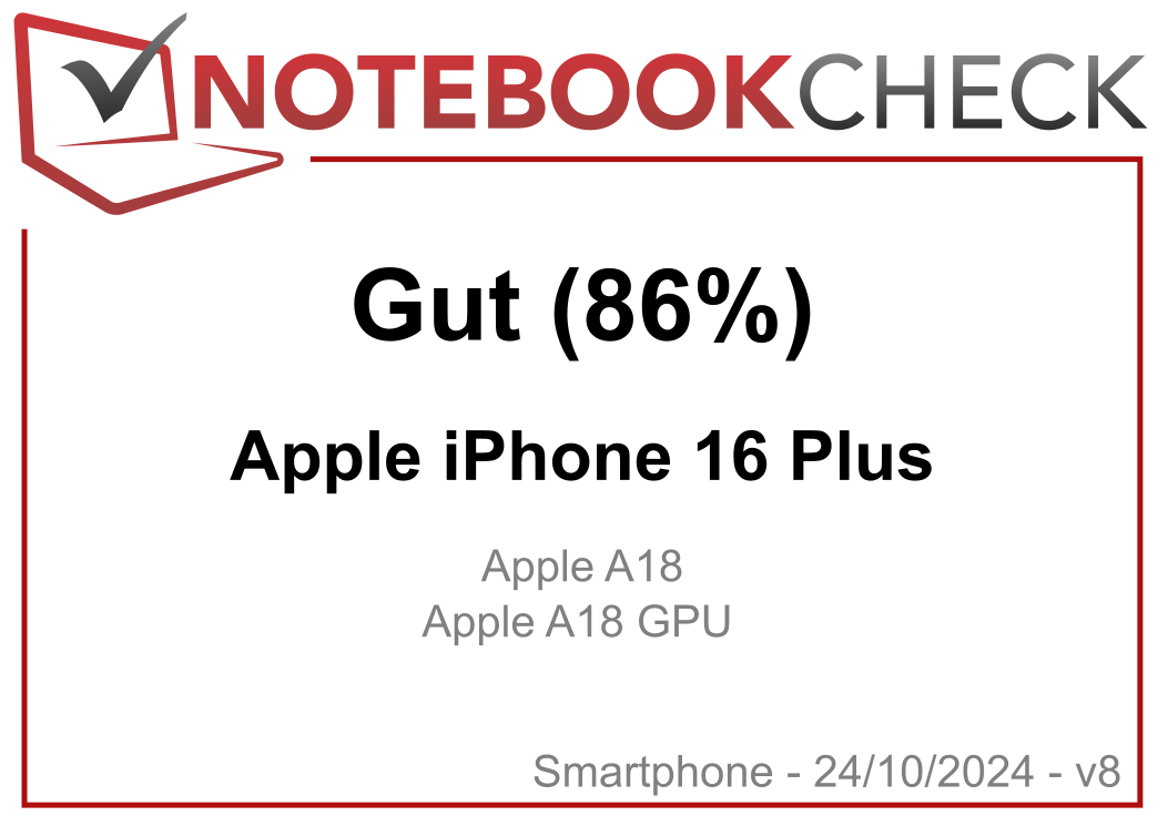 | 86.3 % | v8 | 09 / 2024 | Apple iPhone 16 Plus A18, A18 GPU | 199 g | 128 GB NVMe | 6.70" | 2796x1290 | |