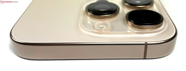 Bei den Gehäusefarben gibt sich das iPhone 16 Pro zurückhaltend – kräftige Farbtöne gibt es nur beim iPhone 16. Neben Weiß und Schwarz steht das Pro-Phone auch in Titan Natur zur Auswahl. Unser Testgerät setzt auf die vierte Farbvariante Titan Wüstensand, bei der sich das iPhone 16 Pro in einem dezenten Bronzeton präsentiert, der je nach Lichteinfall aber sehr blass aussehen kann.