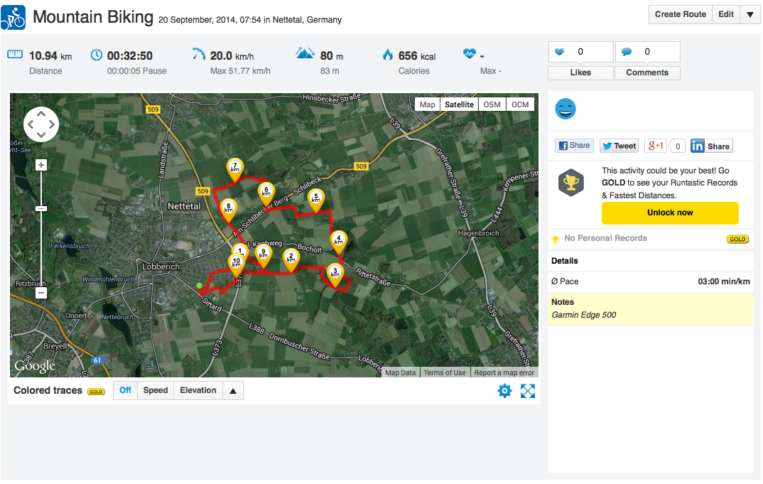 Im Vergleich mit dem Fahrrad-Computer Garmin Edge 500 schneidet das iPhone 6 Plus sogar besser ab. Selbst schwierige Streckenabschnitte wie im Bereich der Überführung oder Fahrten durch Waldabschnitte stellen für das Smartphone kein Problem dar.