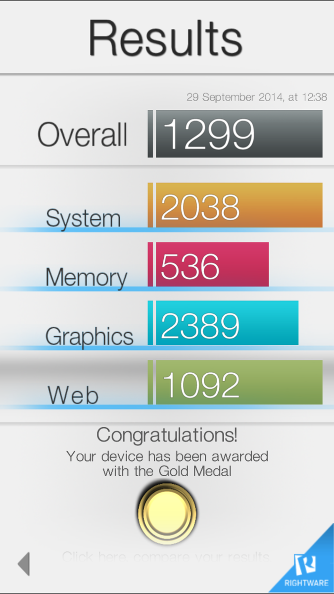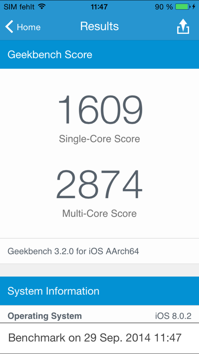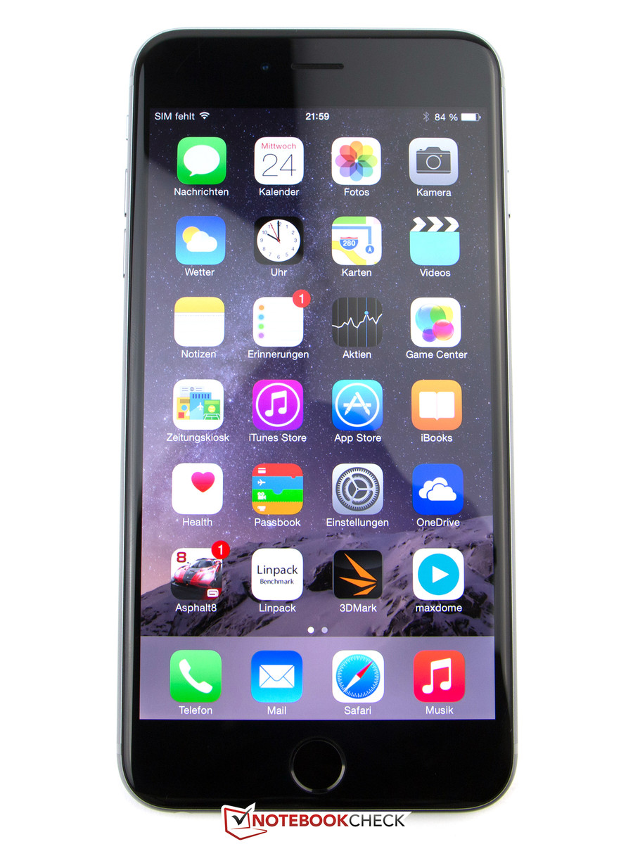In den Benchmarks liefert sich das Testgerät ein Kopf-an-Kopf-Rennen mit dem kleineren Modell. Die Pro-Megahertz-Leistung des Prozessors ist wirklich hervorragend und zeigt, dass im Zusammenspiel mit einem maßgeschneiderten Betriebssystem auch eine Dual-Core-CPU noch absolut ausreicht. Im Geekbench 3 kann im Multi-Core-Test, trotz doppelt so vieler Kerne, lediglich das Samsung Galaxy S5 momentan der Apple-CPU das Wasser reichen. Dies wird sich aller Voraussicht nach jedoch ändern, sobald die ersten Geräte mit dem neuen Snapdragon 805 in diesem Monat auf den Markt kommen. Lediglich der K1 im NVIDIA Shield Tablet hat bereits mehr Dampf unter der Abdeckung, wenn alle Kerne genutzt werden können. Die teilweise schlechtere Leistung des Testgerätes als beim iPhone 6 kann darauf zurückzuführen sein, dass die Apps die native Auflösung des Displays nicht unterstützen und das 6 Plus deshalb den Inhalt skalieren muss.