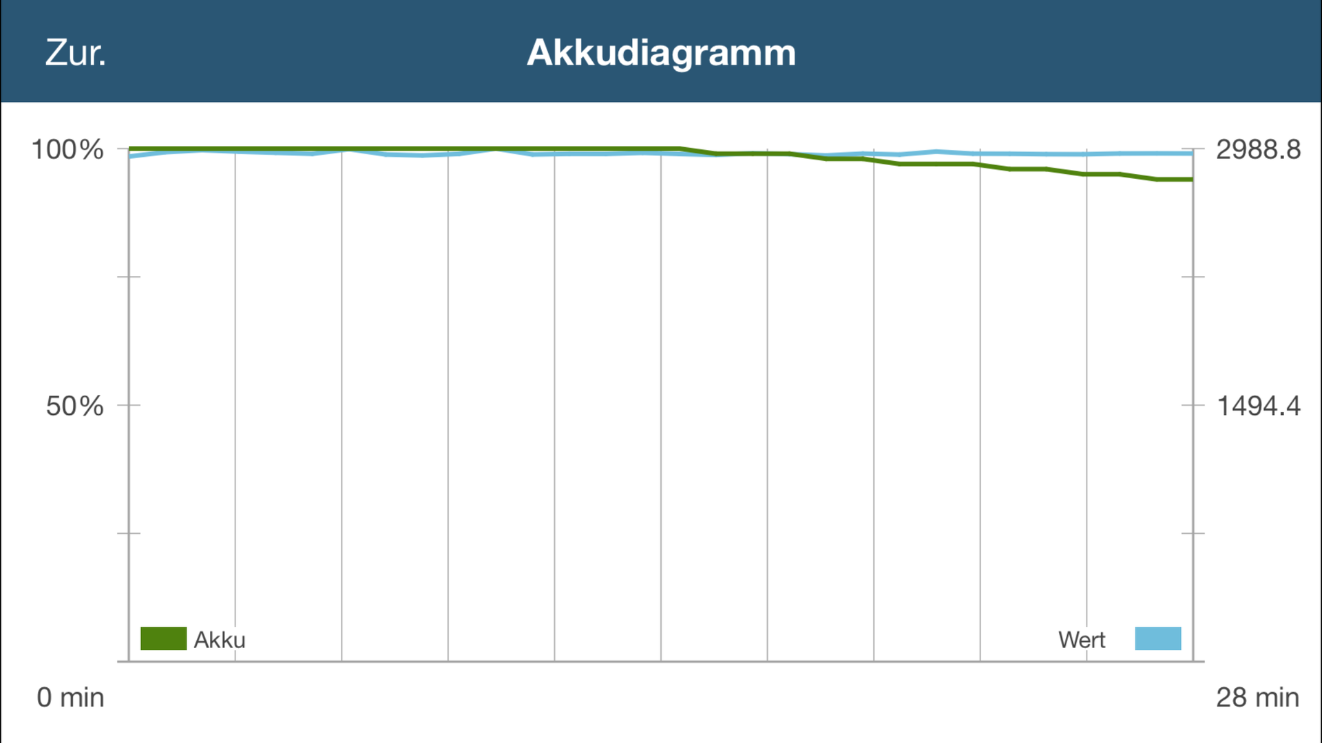 Bei den Tests mit angepasster Displayleuchtkraft (150 cd/m²) ist die Laufzeit im Test „Surfen über WLAN“ überraschend höher als bei der Videowiedergabe. Dies ist für gewöhnlich anders herum. Aber auch eine Wiederholung des Video-Tests brachte keine Veränderung, sondern lieferte ein ähnliches Resultat. Beide stellen jedoch prima Ergebnisse dar.