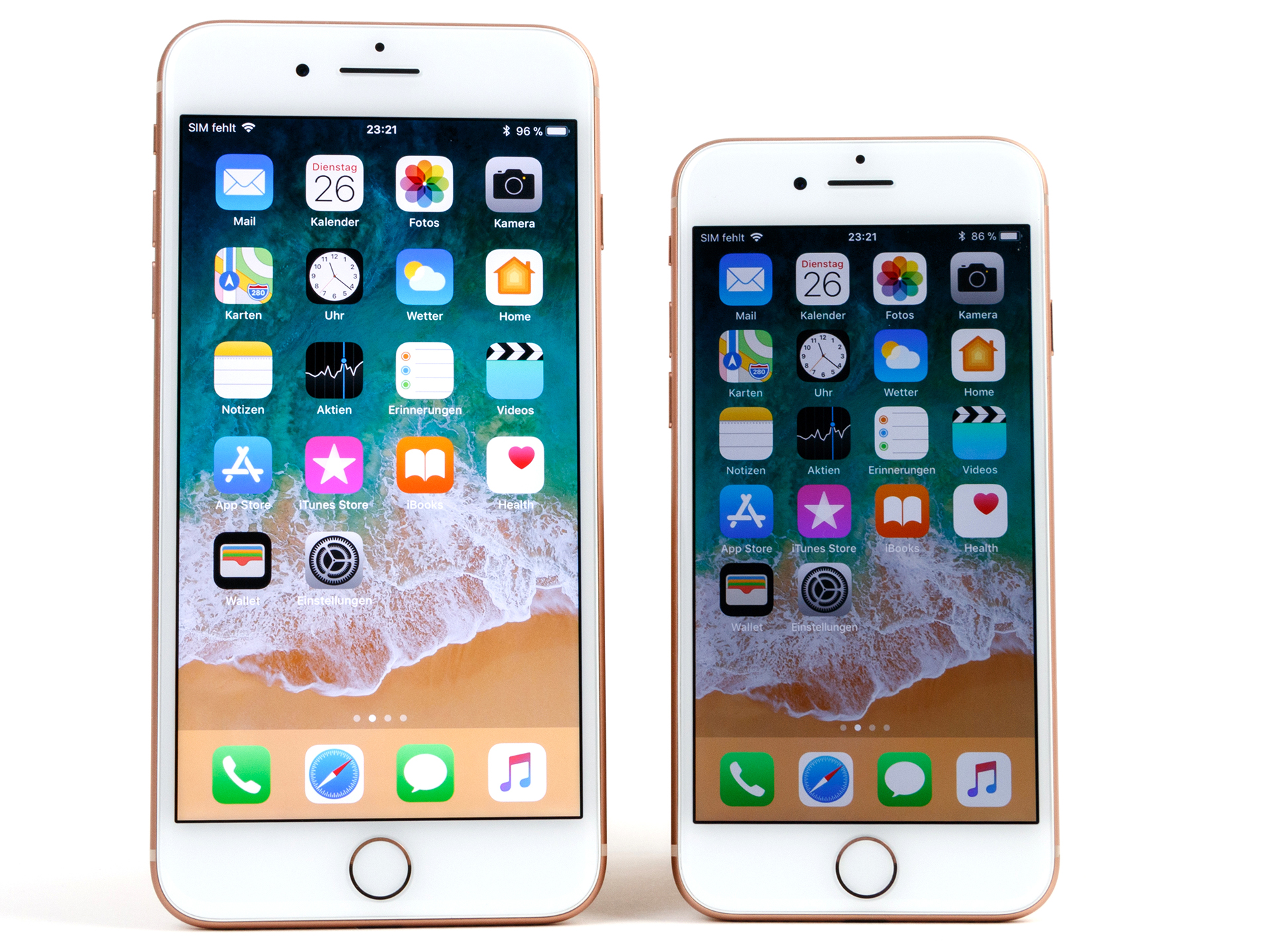 Aber hier und heute geht es um die beiden "klassischen" Modelle mit der von Apple gewohnten Bedienung über Homebutton und Fingerabdrucksensor sowie einer mäßigen Screen-to-Body-Ratio. Die Modellvielfalt hat Apple, vielleicht auch im Hinblick auf das Model X, ein wenig eingedampft. So gibt es die 8er-iPhones nur mehr in zwei Speichergrößen und drei Farbvarianten: 64 und 256 GB in den Farben Gold, Silber und Space Grau. Der erst vor zwei Jahren eingeführte Farbton Roségold dagegen ist nicht mehr im Programm. Dasselbe gilt für die Variante Diamantschwarz, die es nur bei den 7er-iPhones gab. Der neue Goldton erinnert dennoch stark an das Roségold der Vorgänger.