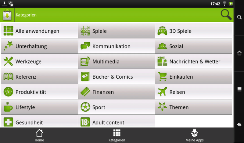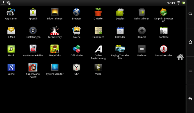 Einige wenige Apps sind vorinstalliert und decken das Grundspektrum ab. Email, Browser, Bildverwaltung, Videoabspieler und Musikprogramm sind bereits an Bord. Leider funktionierte ausgerechnet die wichtigste App für einige Tage während des Testzeitraums nicht. AppsLib, die Schnittstelle des Archos zur Appwelt, war nicht nutzbar, da der Server, vielleicht auch aufgrund der hohen Nachfrage über die Weihnachtstage, mehrere Tage nicht erreichbar war. Wir haben uns vorübergehend mit AndroidPit und dem Camangi Market beholfen, bevor wir schließlich doch noch Zugang zum AppsLib erhielten. Googles Android Market bleibt Archos 101 Nutzern (und auch anderen Archos Tablets) bisweilen verwehrt, da hier die notwendigen Voraussetzungen, hier z.B. fehlendes GPS und UMTS, nicht vorliegen. Obwohl AppsLib unserem Eindruck nach das umfangreichste Angebot der drei Alternativen bereithält, steht bei Weitem nicht die Fülle des Android Markets zur Verfügung. Ein Nachteil gegenüber Geräten, die diesen Zugang nutzen können.