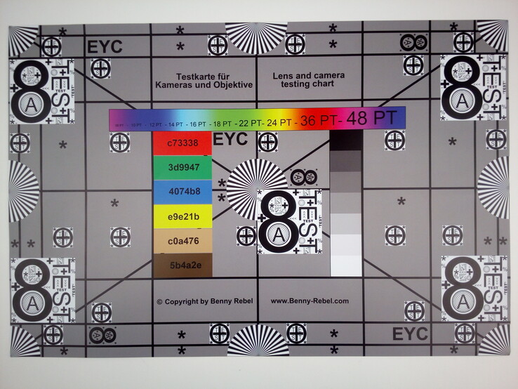 Die Kamera an der Vorderseite nimmt Bilder mit bis zu 5 MP (2.560 x 1.920 Pixel, Fixfokus) und Videos in der Full-HD-Auflösung (1.920 x 1.080 Pixel) auf. Unser Testbild auf der rechten Seite ist unter optimalen Bedingungen entstanden, dennoch sind die Details recht matschig, und wirklich satt sind die Farben auch nicht. In dunkleren Umgebungen kommt noch sichtbares Bildrauschen hinzu.