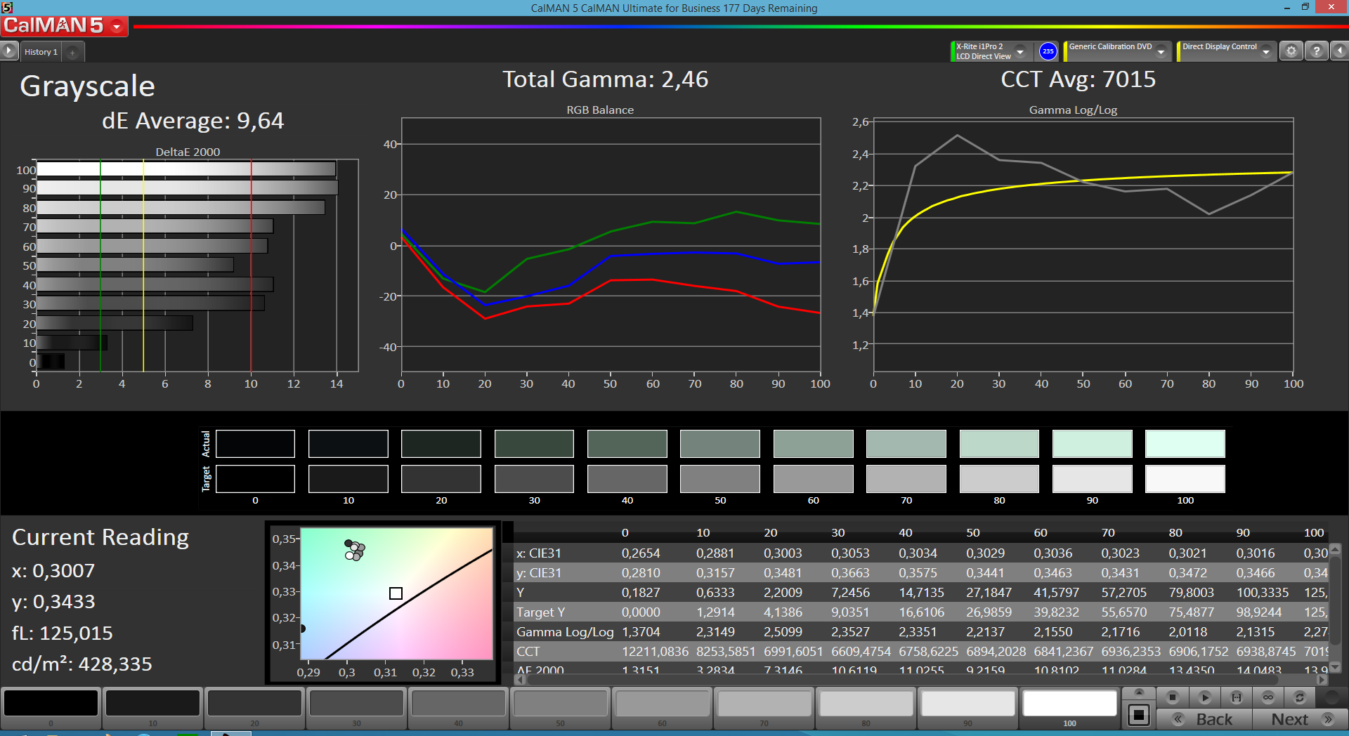 ΔE Greyscale Calman: 9.64 | ∀{0.09-98 Ø5}