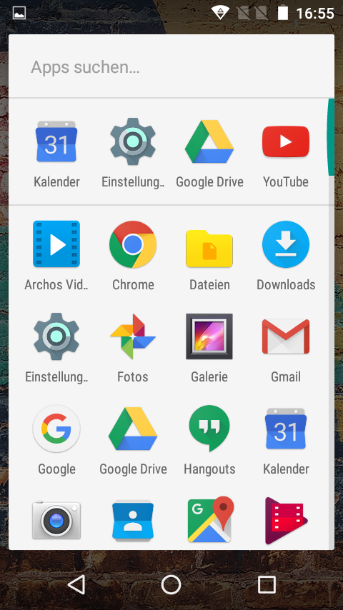 Das 50e Neon läuft mit Googles neuster Version Android 6.0 "Marshmallow", welches zum Zeitpunkt des Tests über die Sicherheitspatch-Ebene vom Stand Juni 2016 verfügt. Die Benutzeroberfläche im Einstellungsmenü, das App Design oder der App Drawer wirken im Vergleich zu Stock Android kaum modifiziert – nahezu pures Vanilla Android kommt bei dem Archos Smartphone zum Einsatz.