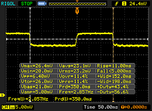 | 16 ms ... steigend ↗ und fallend ↘ kombiniert | ↗ 11 ms steigend | |