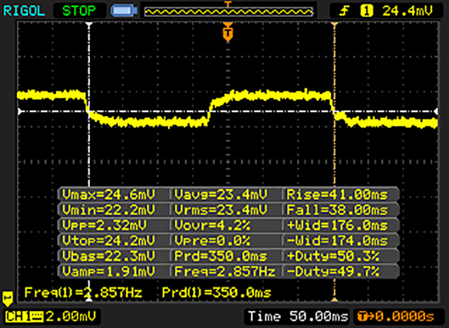 Wert 1: Pink Noise 100 % Vol.; Wert 2: Audio aus
