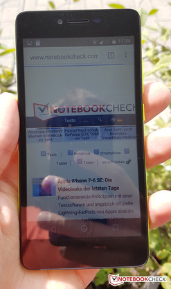 Das TFT-Display besitzt eine Auflösung von 854 x 480 Pixeln. Bei einer Diagonale von knapp 13 Zentimetern (5 Zoll) ergibt das eine Pixeldichte von 196 ppi. In Sachen Displayschärfe haben andere Android Vergleichsgeräte mit 294 ppi (Coolpad Porto S oder Wiko Lenny 3) deutlich mehr zu bieten. Auch subjektiv ist die Schärfe des 50e Neon nicht mehr zeitgemäß.