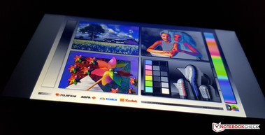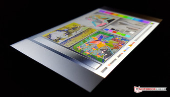 Das Zusammenspiel aus Displayluminanz und niedrigem Schwarzwert von 0,38 cd/m² (APL-50-Wert: 0,39 cd/m²) ergibt ein gutes Kontrastverhältnis von 1:1166. Die Analyse mit einem Fotospektrometer und der CalMAN-Software zeigt dagegen keine guten Resultate - die Abweichungen in der Farb- (13,9) und Graustufendarstellung (17,3) waren gemessen am Zielwert von <3 sehr hoch. Zudem zeigte das TFT-Panel einen deutlich wahrnehmbaren bläulichen Farbstich.