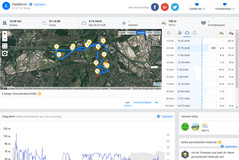 Die mobile Ortung erfolgt über das GPS-Satellitensystem. Die Positionsbestimmung im Freien gelingt ohne große Verzögerungen und mit circa 4 Metern Genauigkeit. Innerhalb geschlossener Räume ist die Signalstärke nicht ausreichend, um die Position zu orten. Der Vergleich mit dem GPS-Fahrradcomputer Garmin Edge 500 zeigt das Smartphone-GPS-Modul nur geringfügige Ungenauigkeiten im Routenverlauf. Knapp 160 Meter liegen zwischen dem 50e Neon und dem Garmin Edge 500 am Ende der etwa 12 Kilometer langen Teststrecke – ein guter Wert, insbesondere für die Preislage.