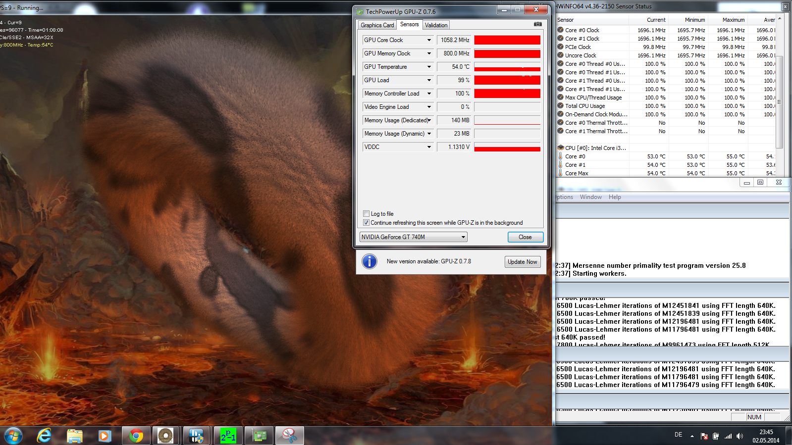 Neben der integrierten Grafik Intel HD Graphics 4400 bietet das Testnotebook noch eine dedizierte Grafikkarte, die Nvidia GeForce GT 740M mit 2 GB eigenem DDR3 Speicher. Zum aktuellen Stand ist dies bereits ein Chip der vorletzten Generation, die noch auf der Kepler-Architektur basiert.